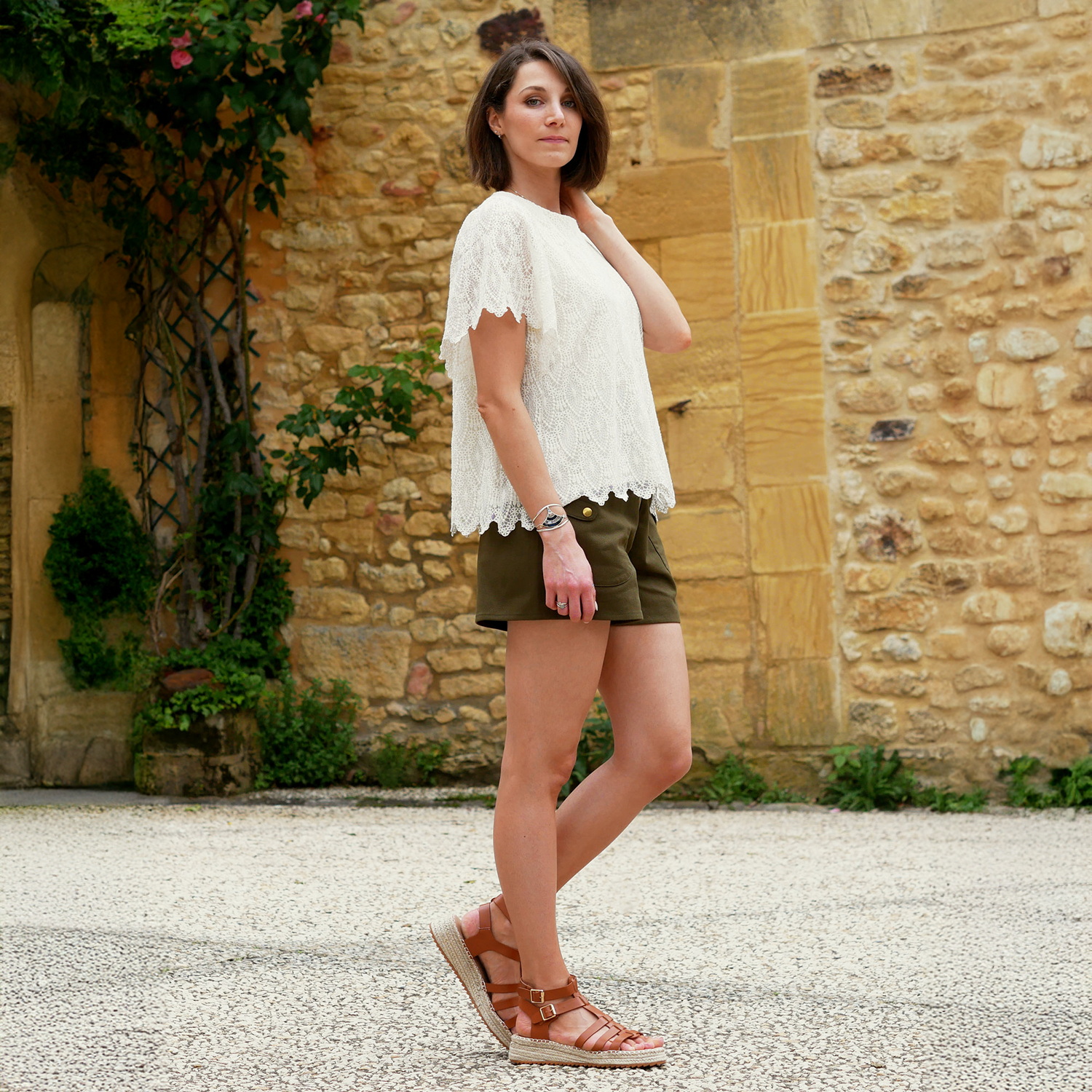 Le top Libeccio c’est un top délicieusement féminin et aérien. Il sera parfait pour une tenue d’été élégante et confortable. il se caractérise par de longues manches papillon, une encolure ronde et une ouverture au dos fermée par une bride et un bouton. Sa coupe ample sera idéale pour être portée par dessus un short ou un jean mais pourra également se porter rentrée dans un bas en la blousant, ce qui allongera la silhouette. Un tissu fluide et souple ou une dentelle seront tout indiqués pour sublimer ce modèle.