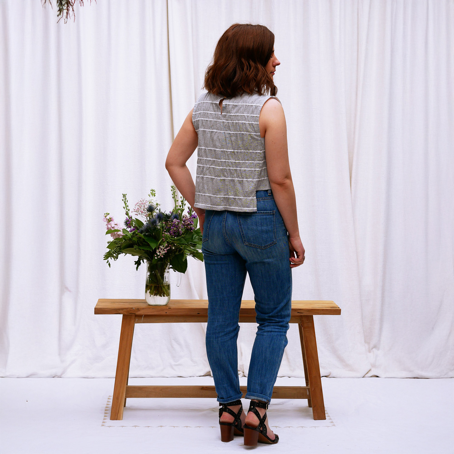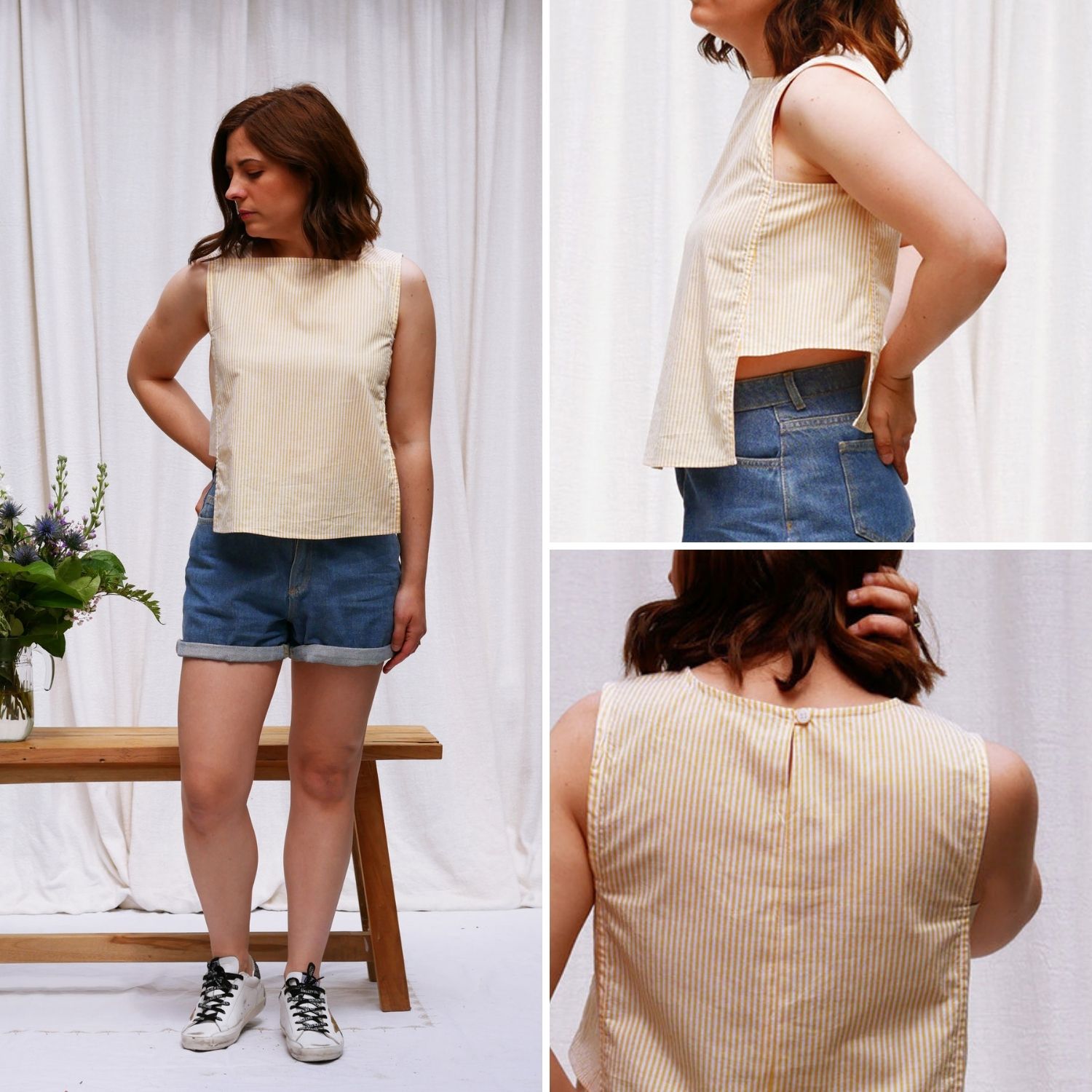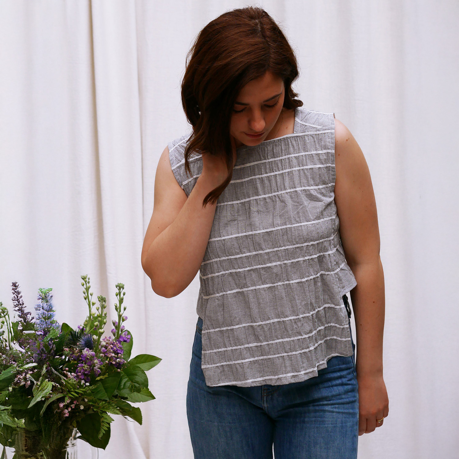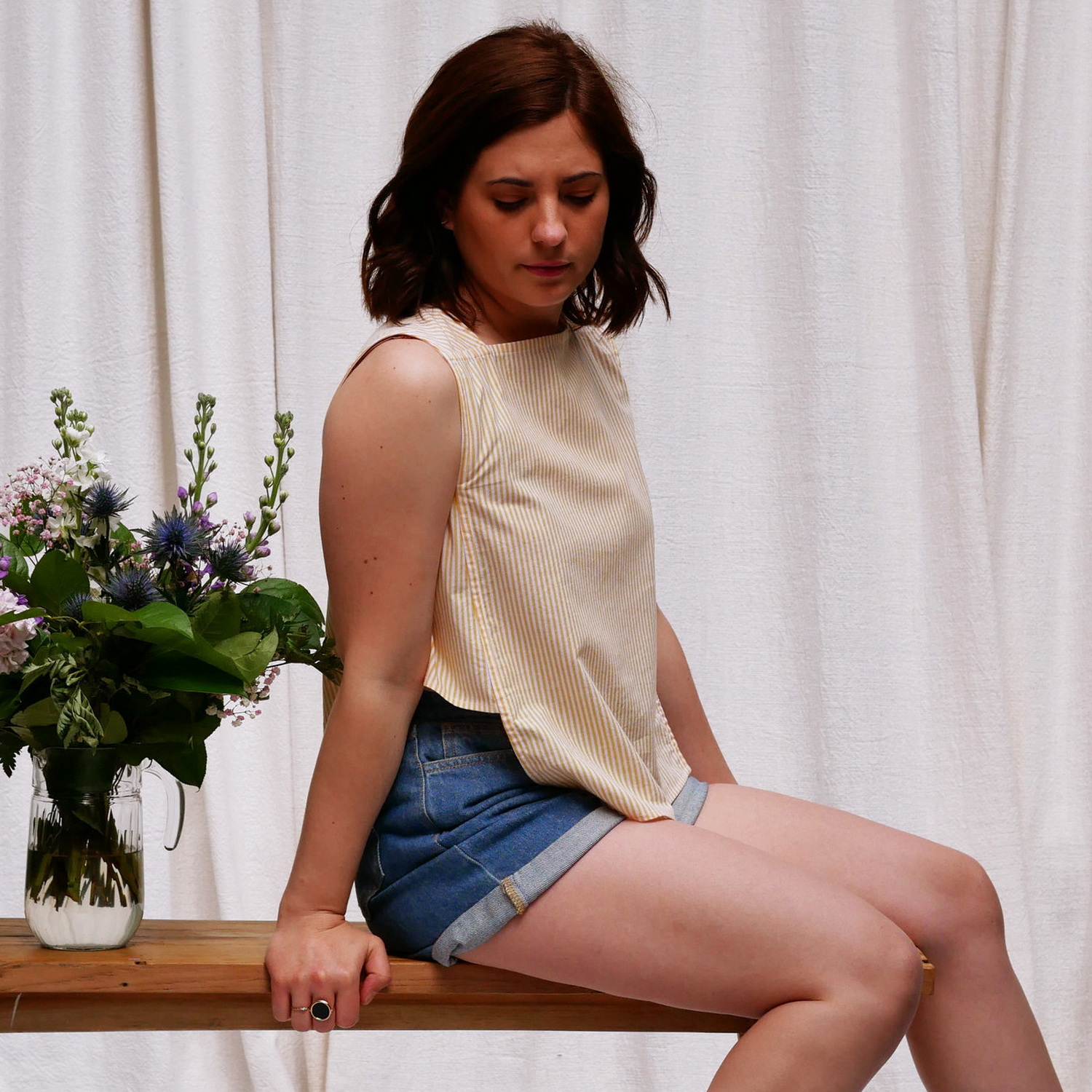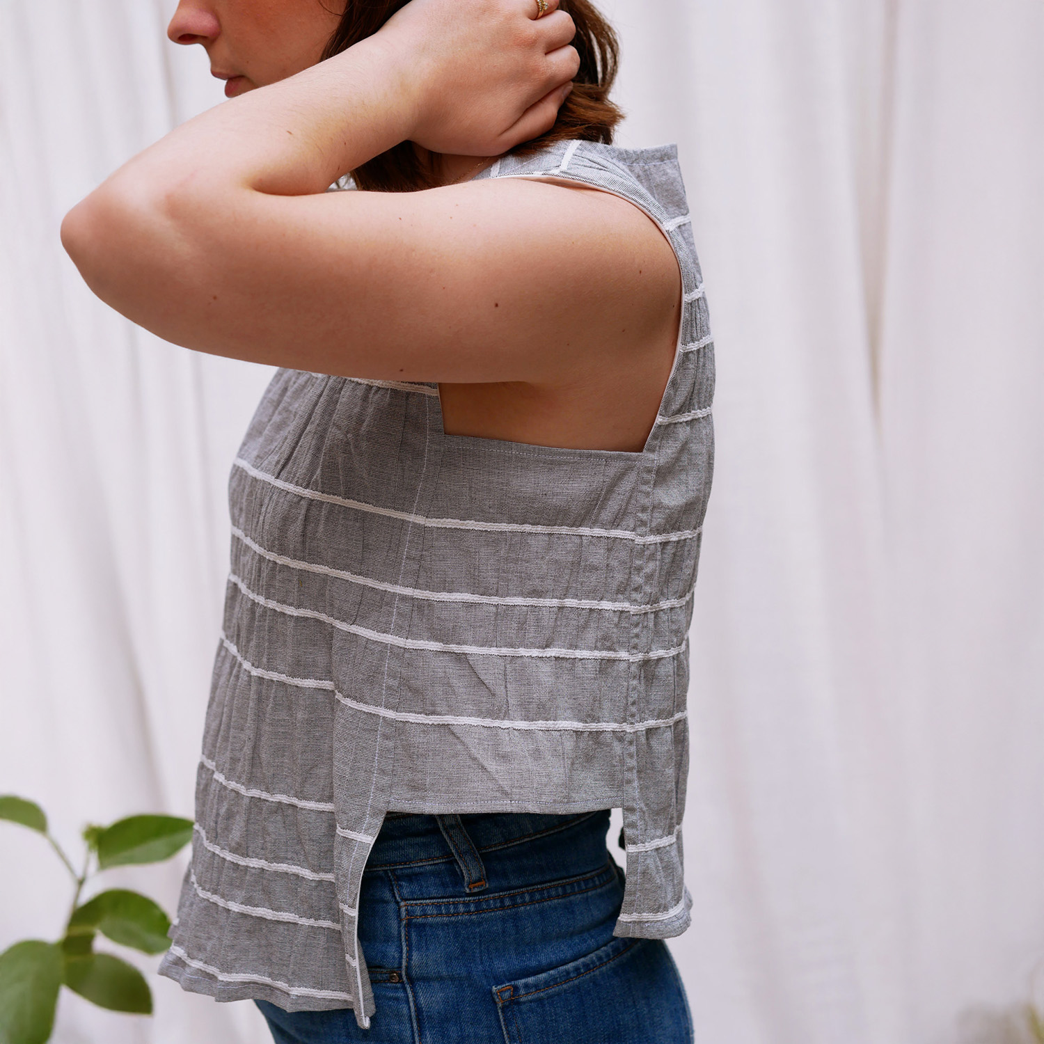 Le top Zora, c’est un top singulier et moderne, idéal pour les beaux jours. Il se caractérise par ses empiècements côtés rectilignes et ajourés. Deux panneaux devant et dos lui donnent un côté géométrique très tendance avec sa coupe légèrement trapèze. Enfin son jeu de décolleté devant avec ses larges bretelles rapportées termine de le rendre unique et original.
