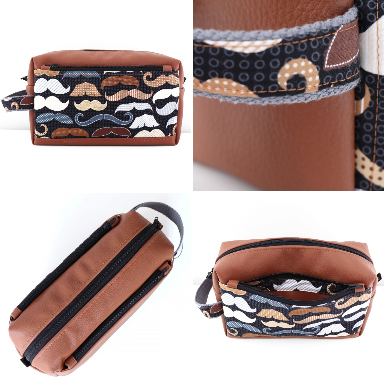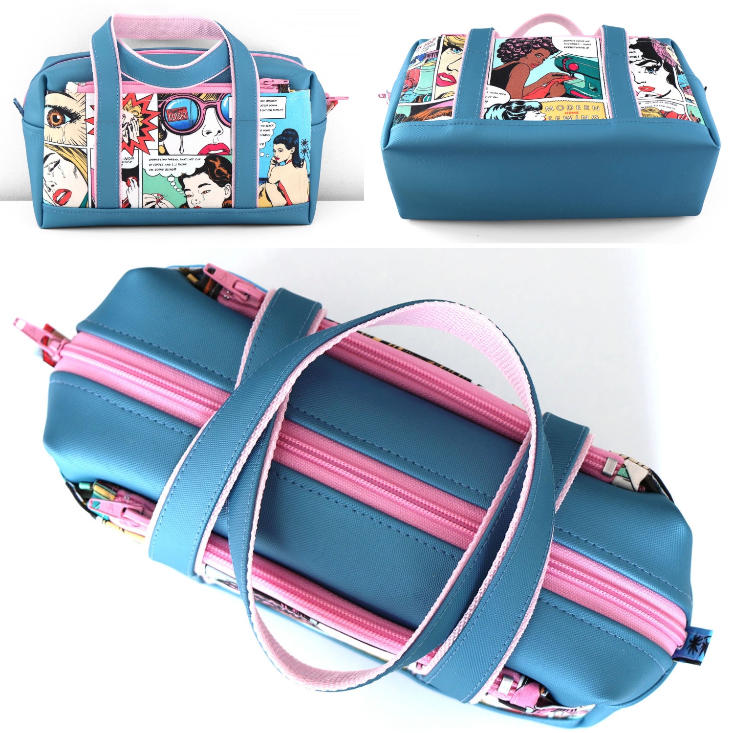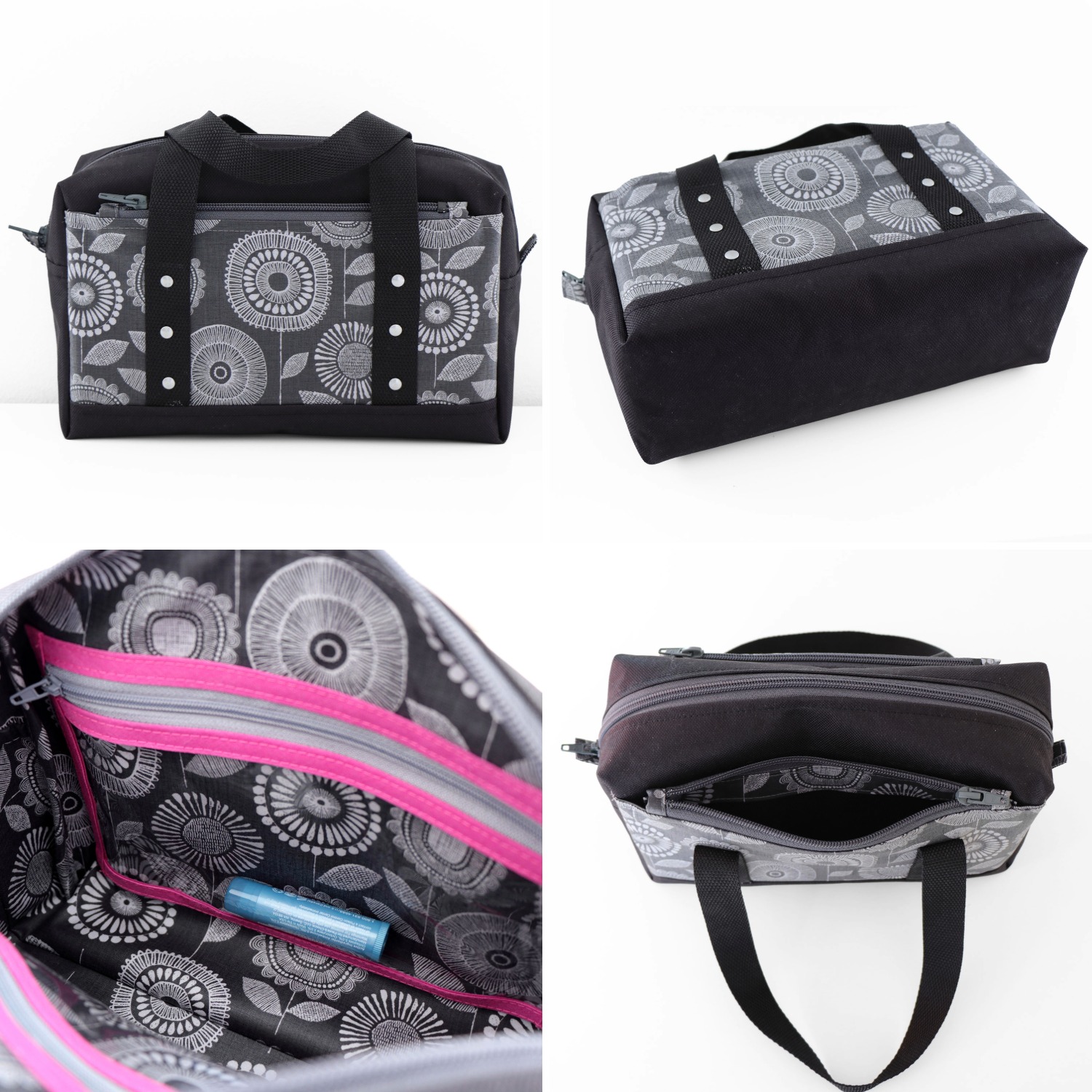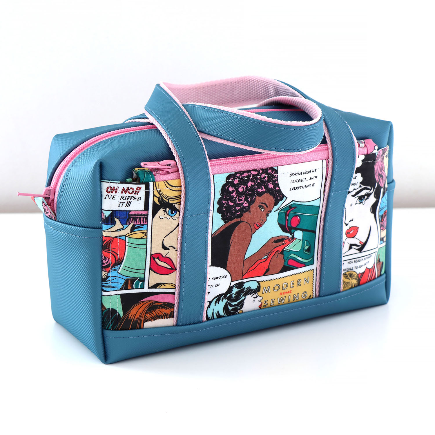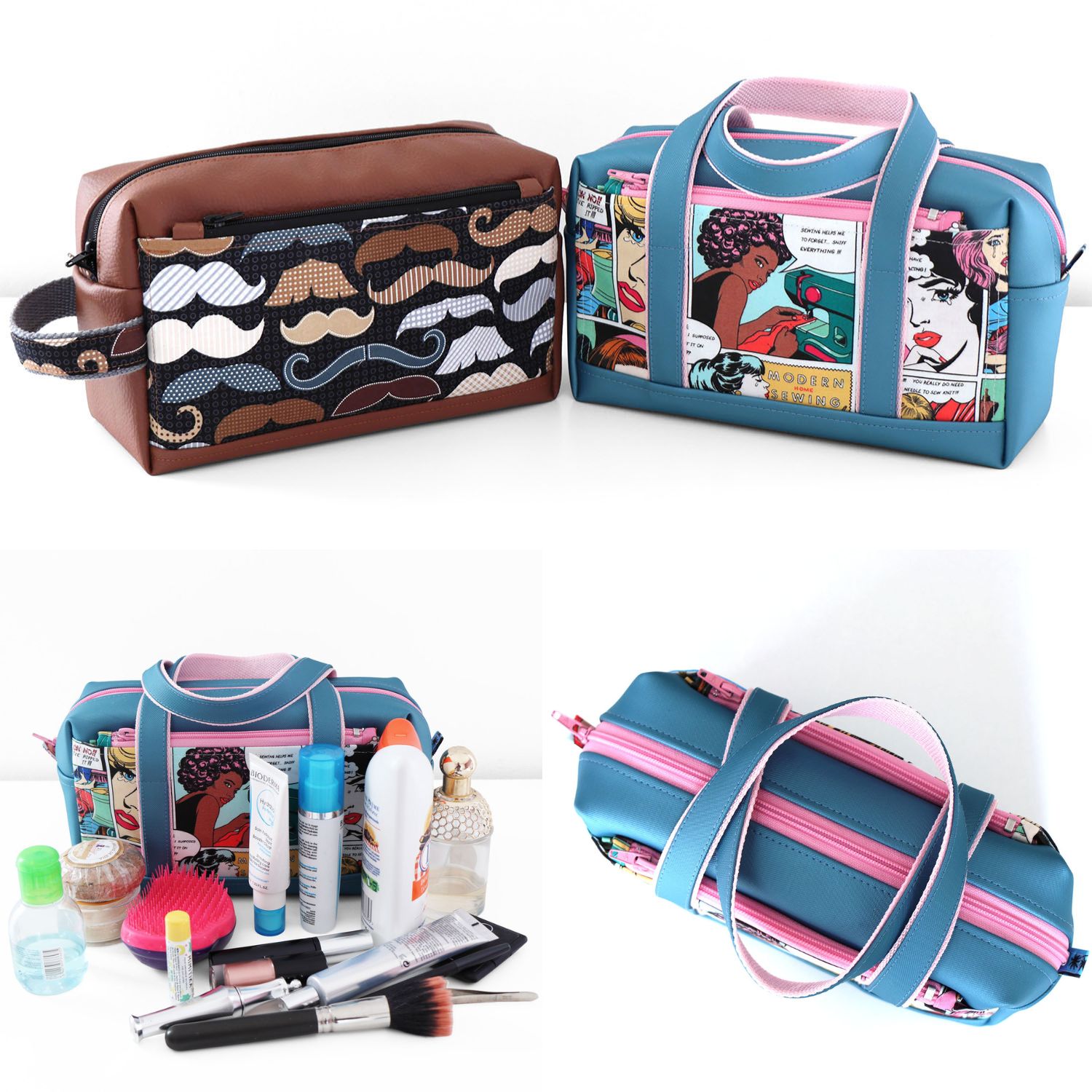 2 options sont proposées dans le patron pour porter votre trousse de toilette : une poignée latérale pour un style sportif ou 2 anses pour un style sophistiqué.