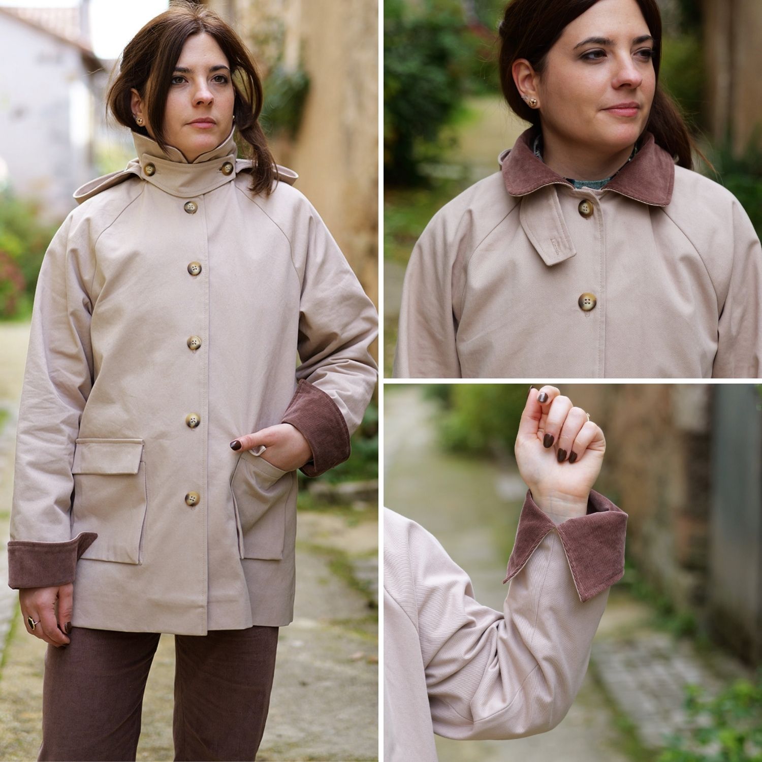 - Tissu principal : Tissu manteaux comme par exemple Gabardine, jeans, velours côtelé, tissu déperlant, jacquard, lainage...