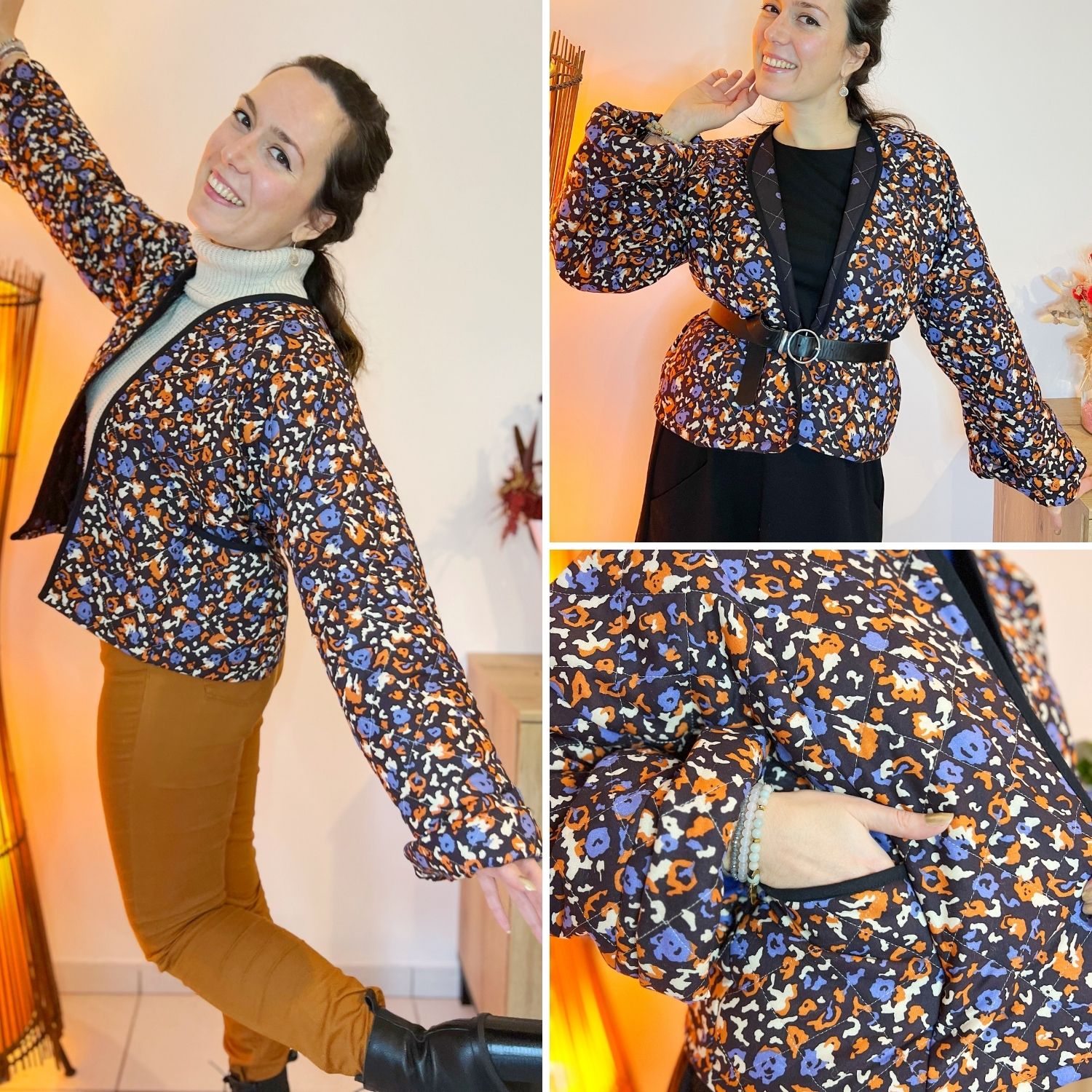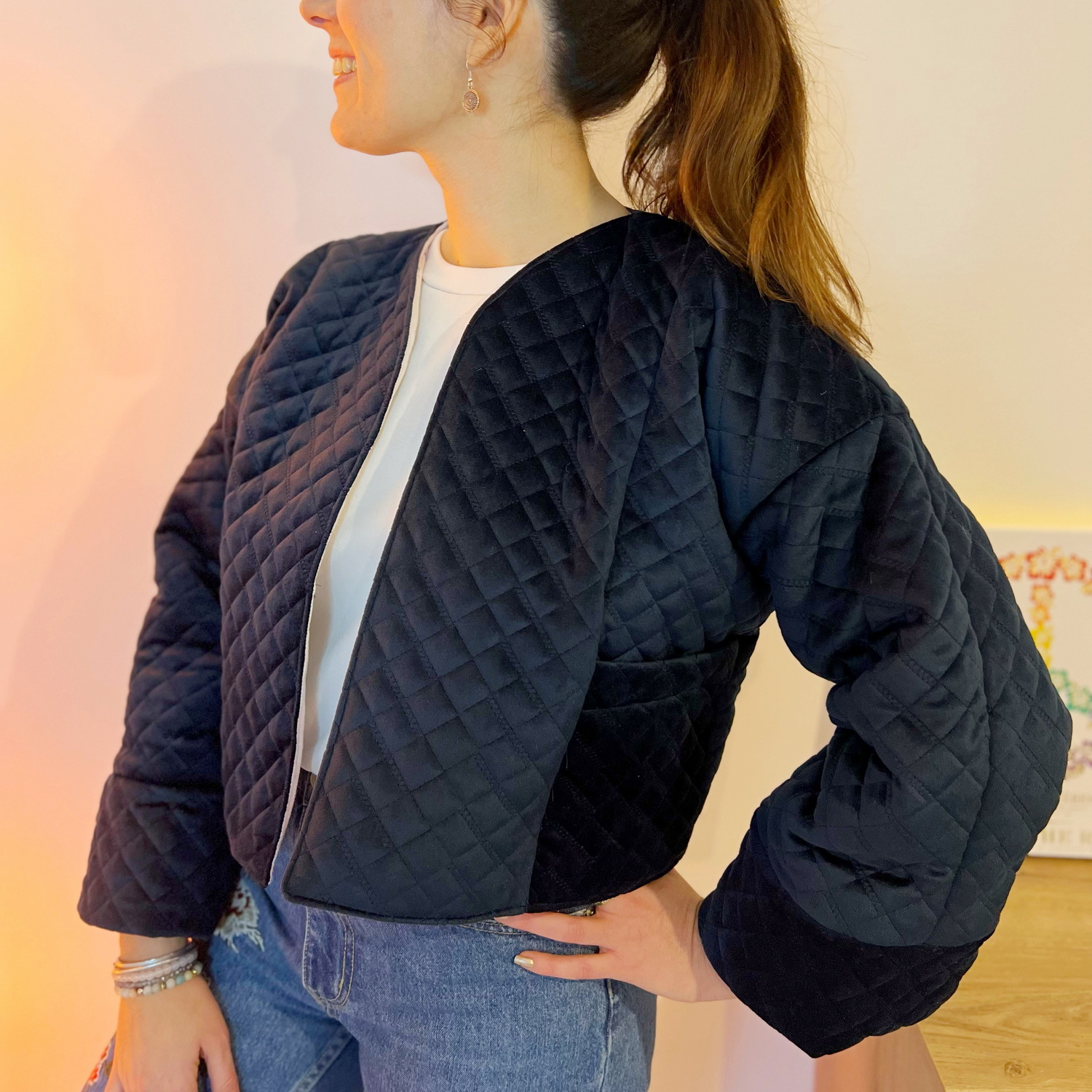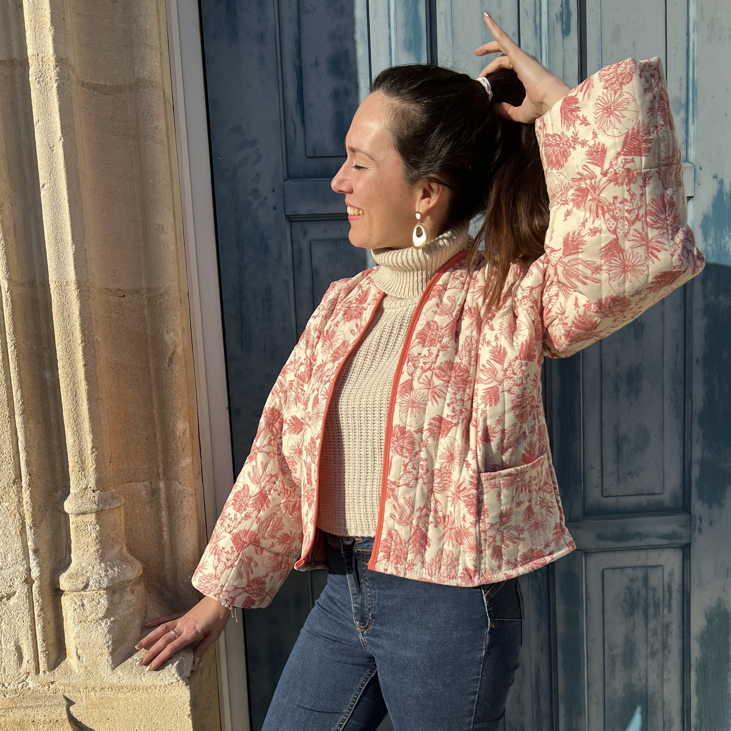 Le patron veste Takara propose plusieurs finitions. Soit il est possible de doubler la veste, soit le tissu est déjà matelassé et doublé avec une finition au biais.