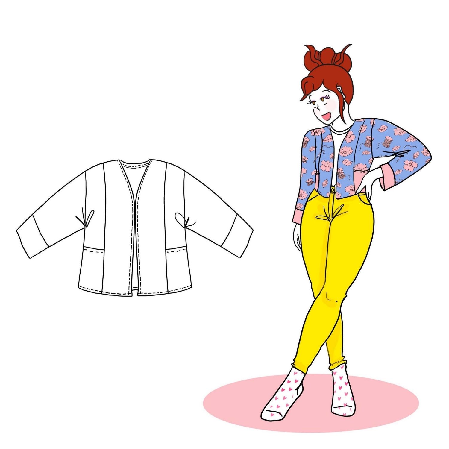 Takara qui signifie « trésor » en japonais est une veste inspirée des kimonos. Comme la plupart de mes patrons, il a été pensé pour être accessible aux débutants qui aimeraient se lancer dans une la couture d’une veste pour la première fois ! Le pas à pas illustré est idéal pour se lancer dans un premier projet de veste :)!