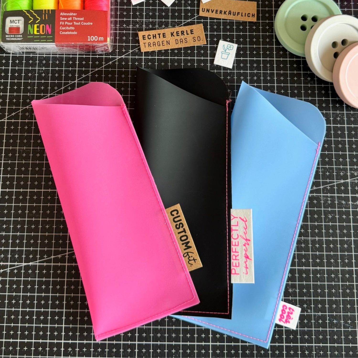 Astuces : Pour de meilleurs résultats de couture, utilisez un pied en Téflon et une longueur de point plus grande (3 à 3,5 mm). Si votre Vinyle Jelly résiste un peu au moment de le retourner, chauffez-le brièvement avec un sèche-cheveux et il deviendra beaucoup plus souple.