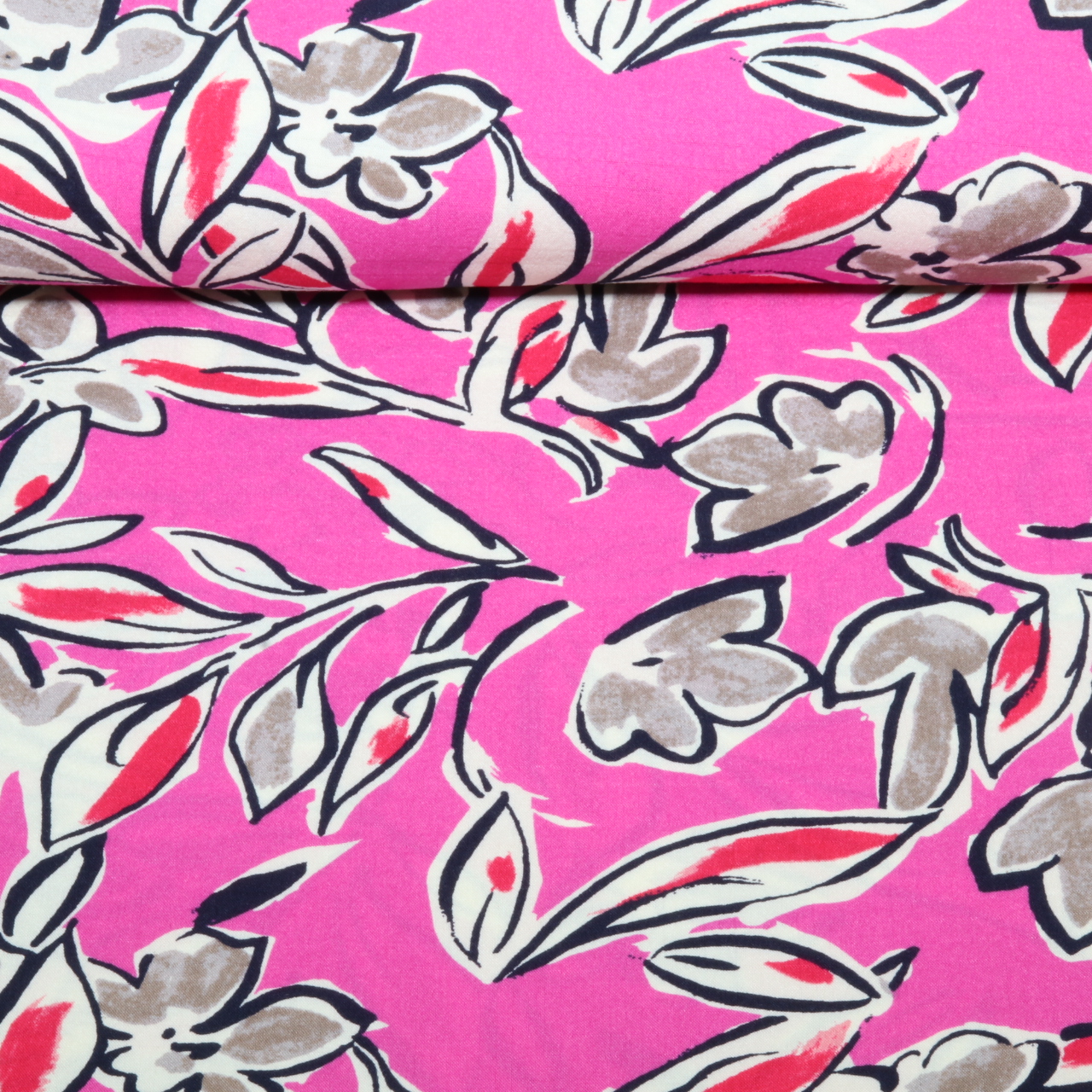 Viscose - Fleurs stretch Rose vif
