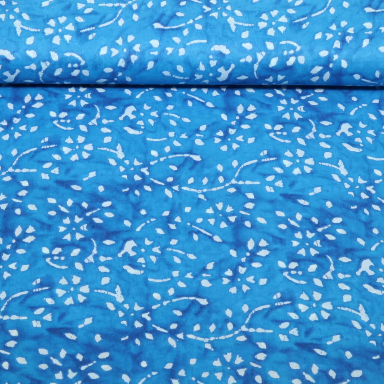 Voile de coton - Batik Guirlandes de fleurs Bleu