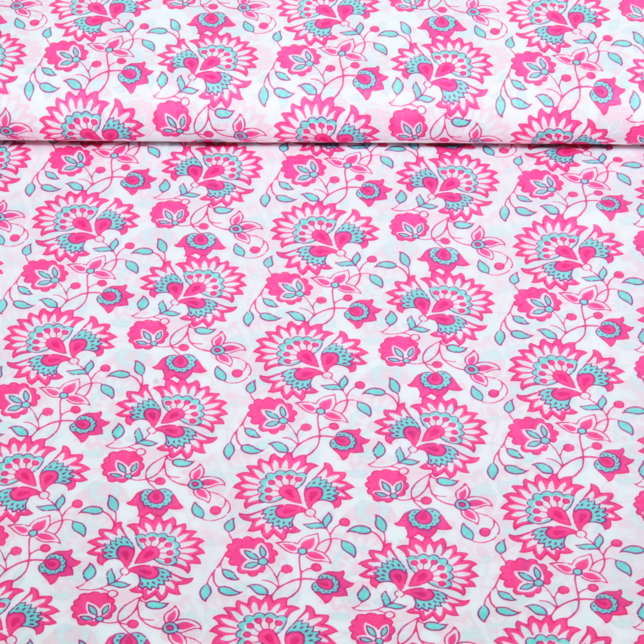 Voile de coton - Collection Enjoy Fleurs Blanc Rose