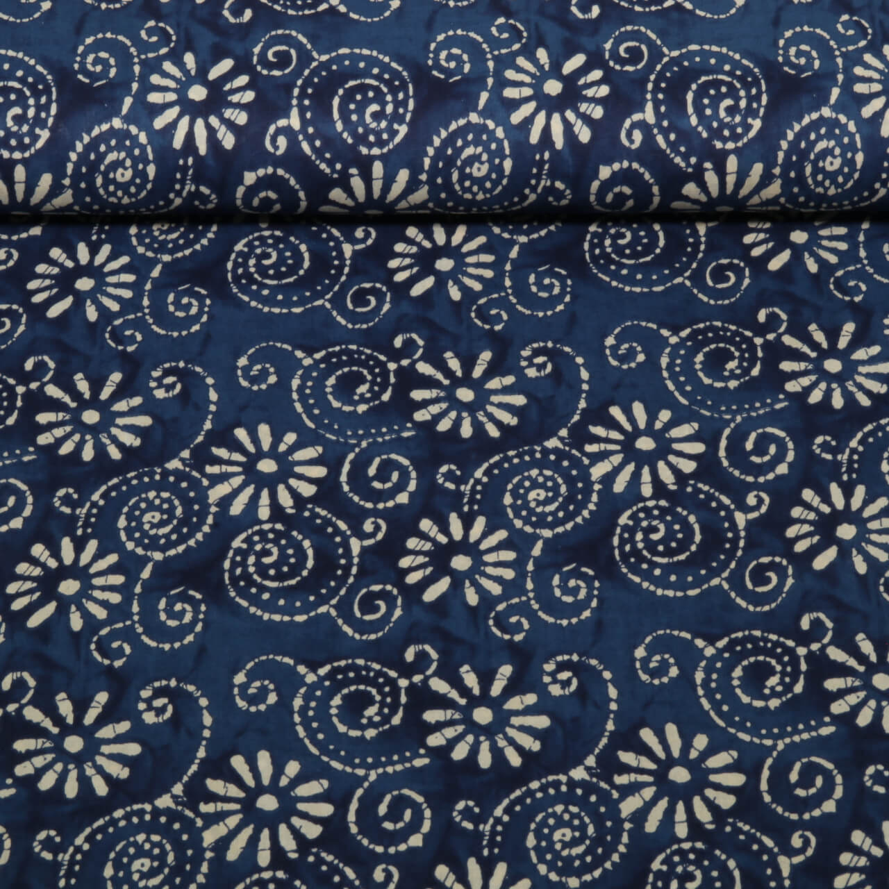 Voile de coton - Fleurs Batik Bleu marine