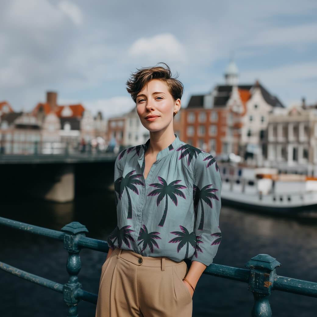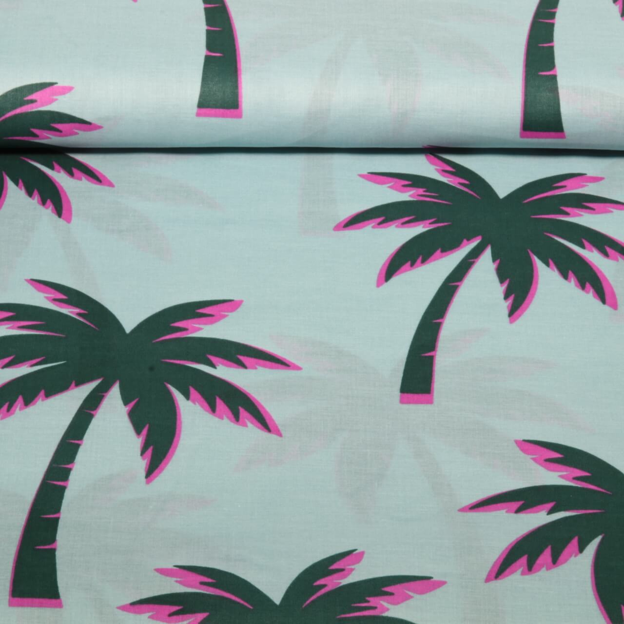 Voile de coton - Palmiers bleu glacier